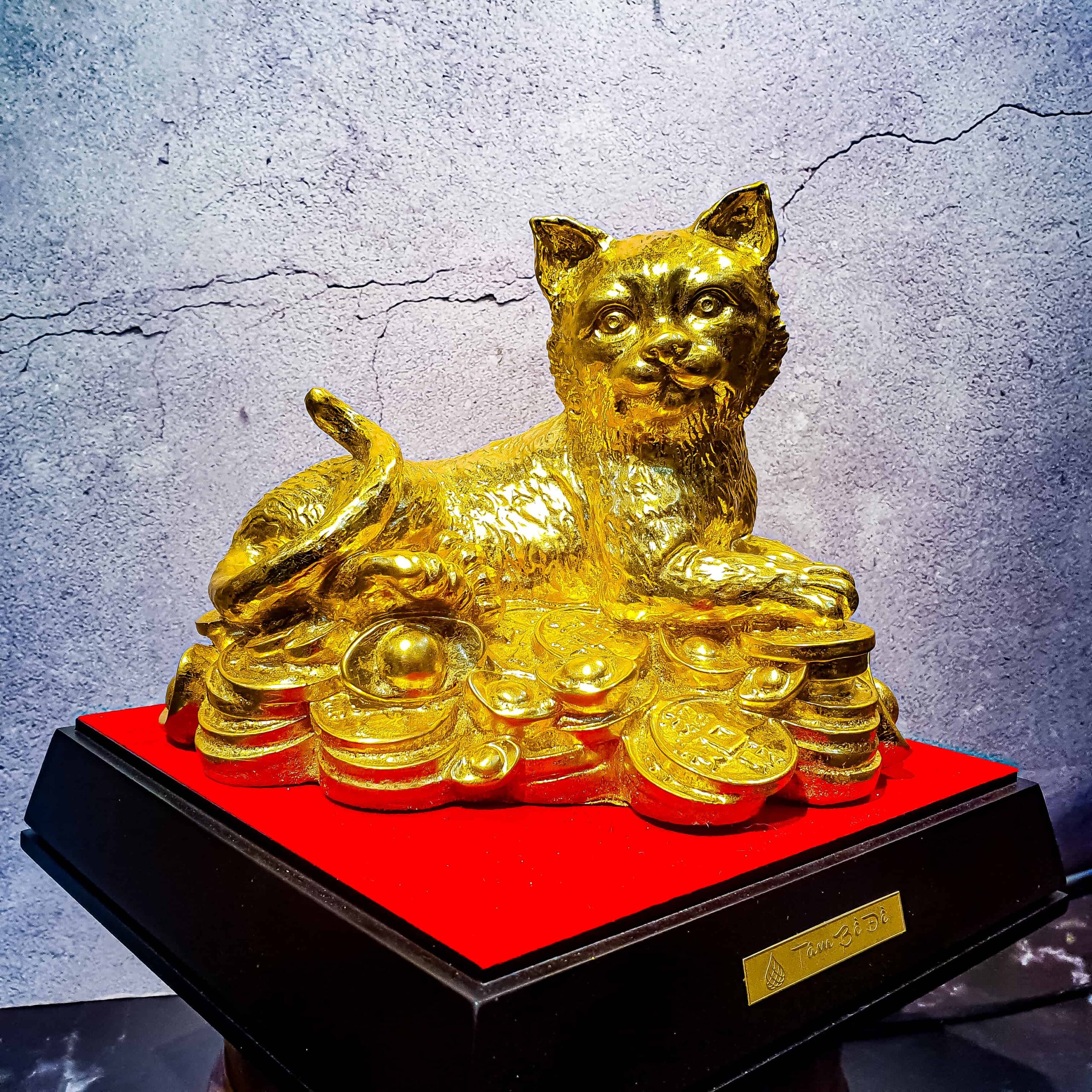 TƯỢNG MÈO TÀI LỘC ĐÚC ĐỒNG DÁT VÀNG 24K