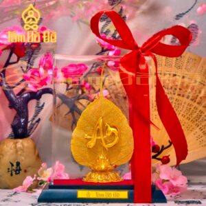 Sản phẩm Bồ Đề Kim Liên – Chữ An là biểu tượng của sự an nhiên, giác ngộ và lòng từ bi, được đặt trang trọng trên đài sen vàng đế vuông, bao bọc bởi hộp mica trong suốt, vừa trang nhã vừa thanh tịnh.