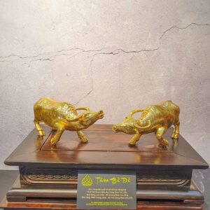 THẾ ĐỐI NGƯU VƯƠNG – TƯỢNG SONG TRÂU ĐÚC ĐỒNG MẠ VÀNG 24K
