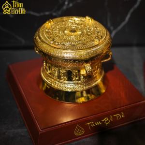 Trống đồng mạ vàng 24K là biểu tượng tiêu biểu của nền văn hóa Đông Sơn – một di sản quý báu phản ánh tinh thần, trí tuệ và bản sắc dân tộc Việt Nam. Sản phẩm được chế tác tinh xảo trên nền trống đồng truyền thống, sau đó được mạ lớp vàng 24K cao cấp, mang lại vẻ ngoài sang trọng và trường tồn theo thời gian.