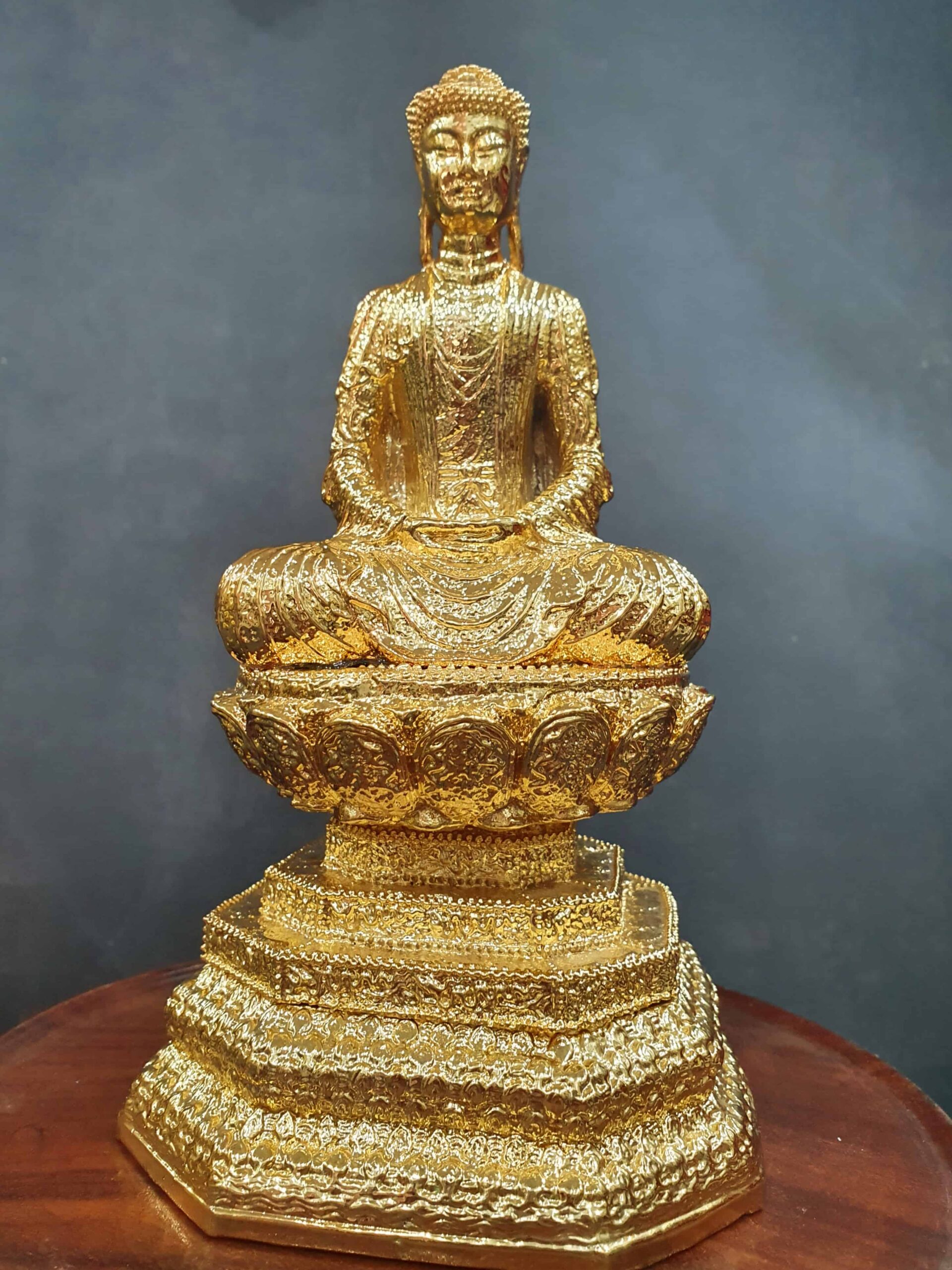 Tượng Phật – biểu tượng của trí tuệ, từ bi và giác ngộ – được tái hiện một cách tinh xảo qua tác phẩm đúc đồng nguyên khối, mạ vàng 24K sang trọng. Lấy cảm hứng từ những pho tượng được công nhận là Bảo vật Quốc gia, mỗi chi tiết đều được chạm khắc tỉ mỉ, giữ trọn hồn thiêng của văn hóa Phật giáo Việt Nam.